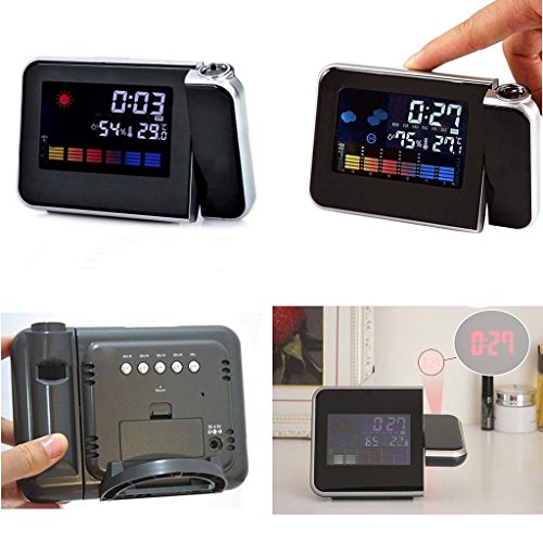 -. Title : Projector Alarm Clock, Warmhoming 180 Degree Digital Weather Clock with Colorful Screen LED Backlight, Weather Temperature and Humidity (Black)