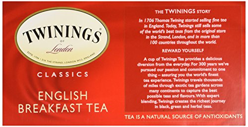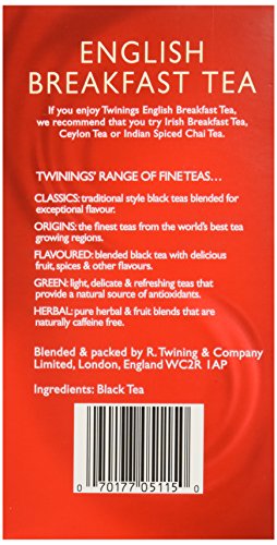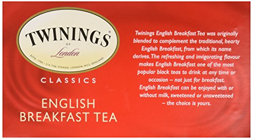 Twinings English Breakfast Tea was originally blended to complement the traditional, hearty English Breakfast, from which its name derives. The refreshing and invigorating flavour makes English Breakfast one of the of the most popular black teas to drink at any time or occasion - not just for breakfast. English Breakfast can be enjoyed with or without milk, sweetened or unsweetened - the choice is yours.