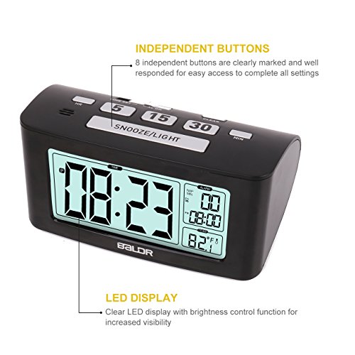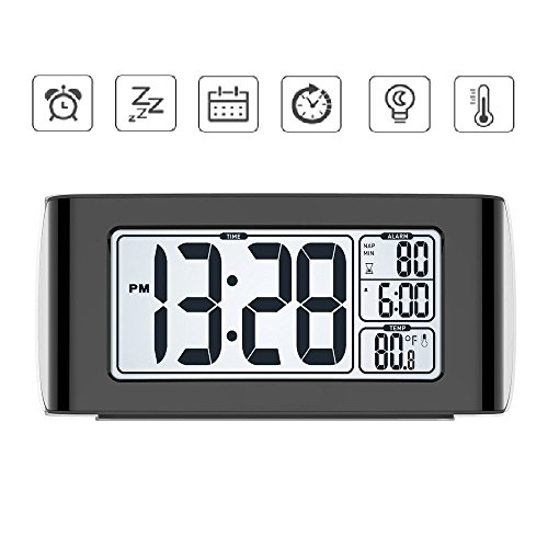 Alarm Clock, Battery Operated with Large Lcd Display Temperature Display Nightlight and Snooze Smart Backlight Digital Alarm Clock