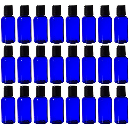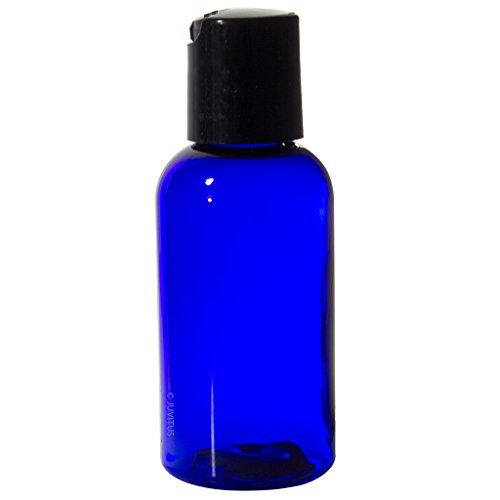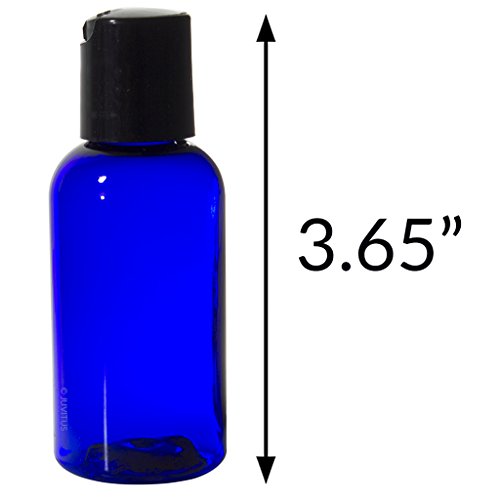 Cobalt Blue 2 oz Boston Round PET Bottles (BPA Free) with Black Disc Cap Dispenser (24 Pack) + Labels