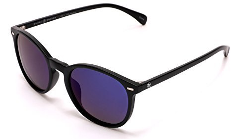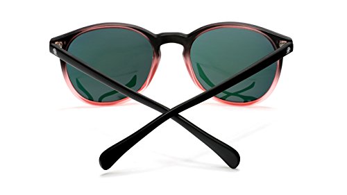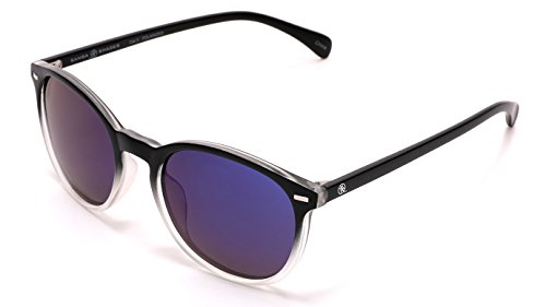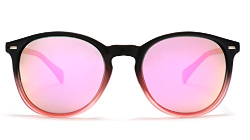 Samba Shades Polarized Round Verona Wayfarer Sunglasses with Black and Transparent Pink Frame, Mirrored Lens