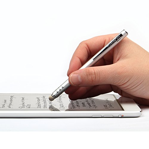 Lynktec TruGlide Mesh Fiber Stylus with Microfiber Knit Tip for All Capacitive Touch Screen Tablets, iPad, and Smartphone (Silver with Silver Clip)