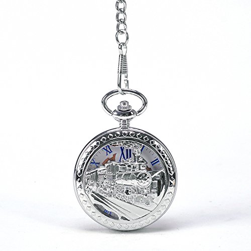 -. Title : Silver Train To Travel Men Mechanical Pocket Watch Hollow Steampunk Skeleton Round Watch Gift