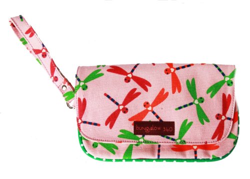 -. Title : Bungalow360 Pink Dragonfly Vegan Cotton Canvas Wristlet