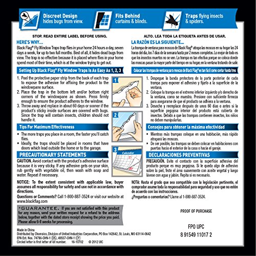Black flag fly window trap attract and traps house flies, mosquitos, gnats, moths and other flying insects without the use of insecticides. Just peel and stick on windows, screens and sliding doors.