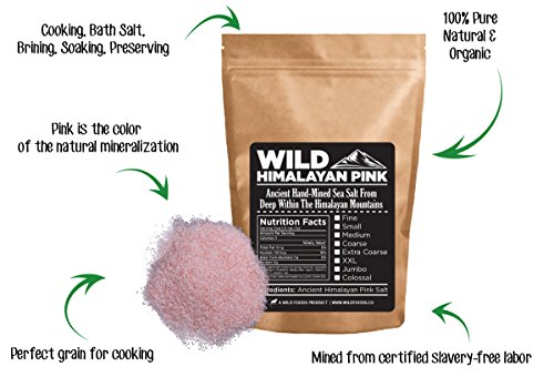Wild Himalayan Pink Salt - 100% Natural And Healthy Gourmet Unrefined Pink Salt From Deep Under The Himalayan Mountains (8 ounce) (Fine - Cooking Size)
