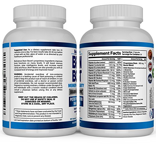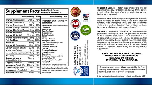 ★ FOCUS, MEMORY & CLARITY – Brain Boost is an all-natural Nootropic, formulated to help support memory and cognition. The perfect blend of ingredients will increase oxygen and circulation in the brain, brain cells and neurons. You will remember more easily and think better without brain fog or stress