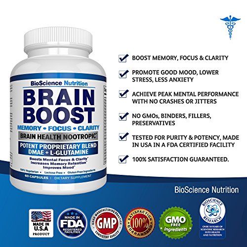 Premium Brain Function Supplement – Memory, Focus, Clarity – Nootropic Booster with DMAE, Bacopa Monnieri, L-Glutamine, Vitamins, Minerals -...