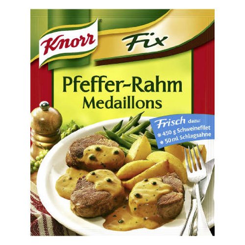 -. Title : Knorr Fix creamy medaillons with pepper sauce (Pfeffer-Rahm Medaillons) (Pack of 4)