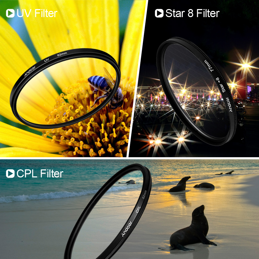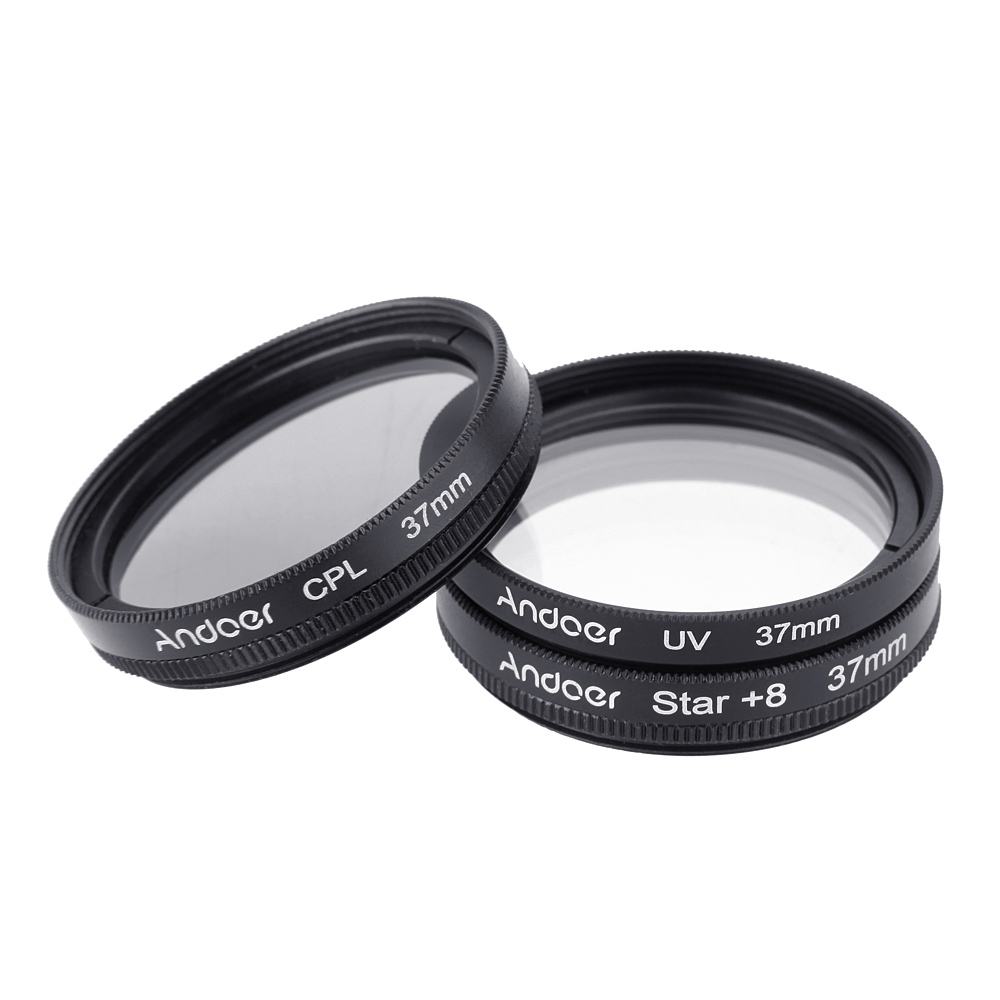This set includes one UV filter, one CPL filter, one star 8 filter and carrying bag.
