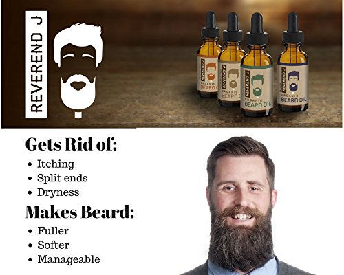 Reverend J Beard Oil - Cedar, Citrus and Pine Pure Beard Goodness The beard is back and here to stay! Reverend J is what your beard needs to look, grow and smell its best! - Helps get rid of that beard itch. - Eliminates beard dandruff and split ends with regular use. - Maximizes your beard growing potential. - Tames your beard, helping wild hairs lay down. - Makes your beard look its best, feel its best and grow its best! Reverend J is a real person with a real beard! He made this beard oil for himself and his fellow bearded brothers, and he will personally respond to any questions you have about your beard, or his beard oils! - Made with the best combo of all organic oils. You're going to get a perfect blend of all natural Grapeseed, Argan, Jojoba, Avocado, and Castor oils! These oils literally get to the root of your beard growth and health. They promote healthy skin and help your beard feel and look great! - Reverend J's Cedar-Citrus-Pine Beard Oil is a crisp pine scent with citrus and cedar undertones. It's a forest in a bottle! Our Cedar, Citrus and Pine is our most popular scent. We use high quality essential oils that help you look, smell, and feel great. - Includes a free Reverend J carrying bag! MONEY BACK GUARANTEE. Reverend J stands by his products. If you're not satisfied, he'll refund you or send you out one of his other products at no charge, hassle free and fast! Check out our other amazing scents: - Vetiver - a cool, earthy scent! The best scent you've never heard of! - Frankincense and Clove - This is an awesome scent combo! Sacred, spicy, slightly sweet. You'll love it! - Fragrance Free. If you just want pure bearded goodness, then this is for you. No scent, just the perfect blend of great oils for your beard!Feature