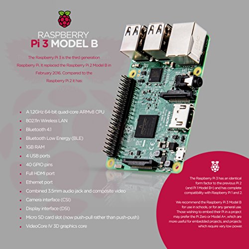 NeeGo Raspberry Pi 3 Starter Kit – Pi 3 Model B Barebones Computer Motherboard with 64bit Quad Core CPU & 1GB RAM, 2.5A Power Supply & Heatsink 2-Pack