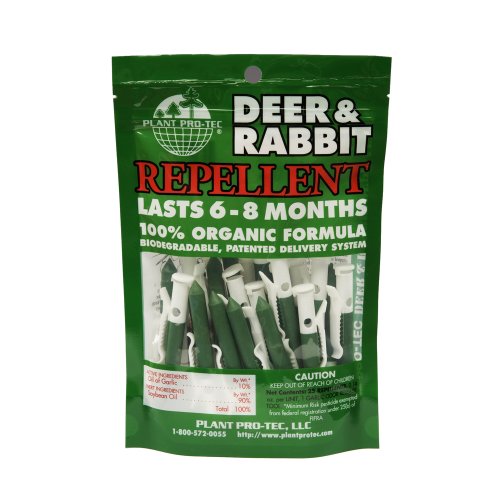 -. Feature : Safe and Natural Deer/Rabbit Repellent / Remains Effective for up to 6 to 8 Months / Organic Food Grade Formula / Patented Slow Release System Resists Wind, Rain, and Snow / Break Seal to activate and Clip to Plant, Fence or Simply Lay on Ground