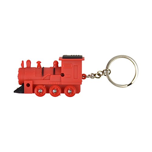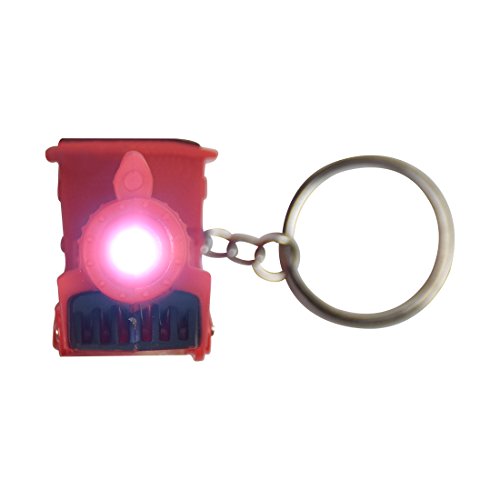 Product Description This is a cute train keychain to hang on your key ring. It includes batteries and has flashing lights and sound. The keychain measures approximately 2 inches long and 1 inch wide. It's great for a gift or kids' prize! 0