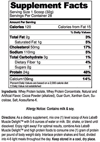 Axis Labs Muscle Delight 100% Premium Whey Protein, Chocolate Cake, 2 Pound