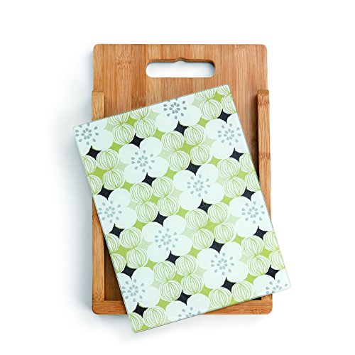 Demdaco Floral Patterned Wood and Glass Cutting Board Set, Multicolor