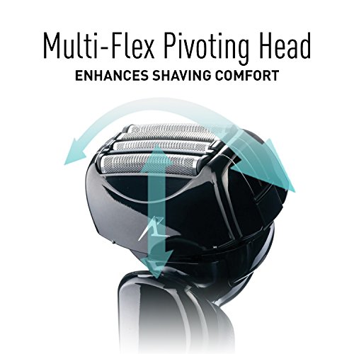 A Panasonic Arc4 Multi-Flex(TM) pivoting head enables the men's electric shaver to glide smoothly along the individual contours of the face, chin, neck and jaw and Multi-fit ARC foils gently conform to facial contours, for enhanced shaving comfort.