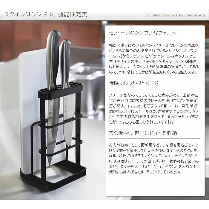 원본상품명: 包丁 まな板 スタンド タワ tower 【送料無料】 まな板立て まな板スタンド まな板ホルダ 包丁立て 包丁差し 包丁スタンド 包丁ホルダ カッティングボド ナイフ スタンド キッチン納 山崎業 [ tower タワ カッティングボド&ナイフスタンド ]