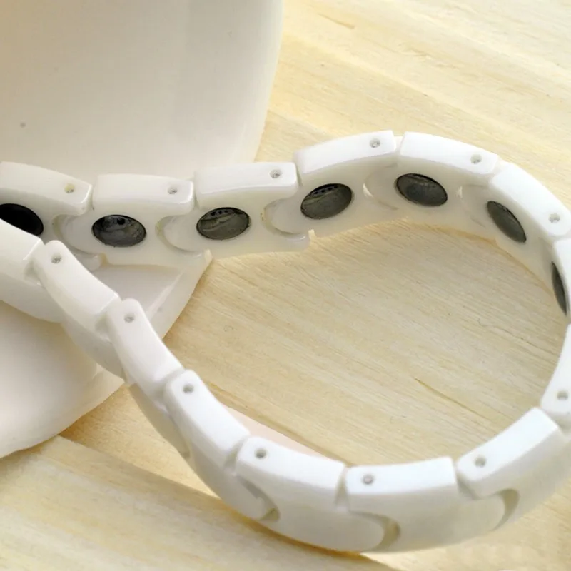 Item NO.:Hematite White Ceramic Bracelets GCB-001W-1