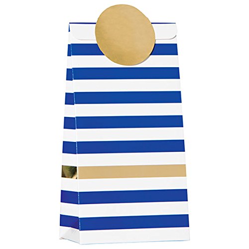 Design Design 677-07819 Kenzie Stripe-Navy Paper Treat Bags (6 Pack), Navy Blue