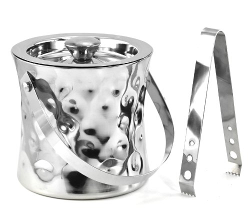 -. Feature : Double wall stainless steel construction for durability and maintaining temperature of cold items longer / Handle for easy transport / Bolt hammered, mirror finish / Ice bucket includes stainless steel lid and tongs / Maintains temperature