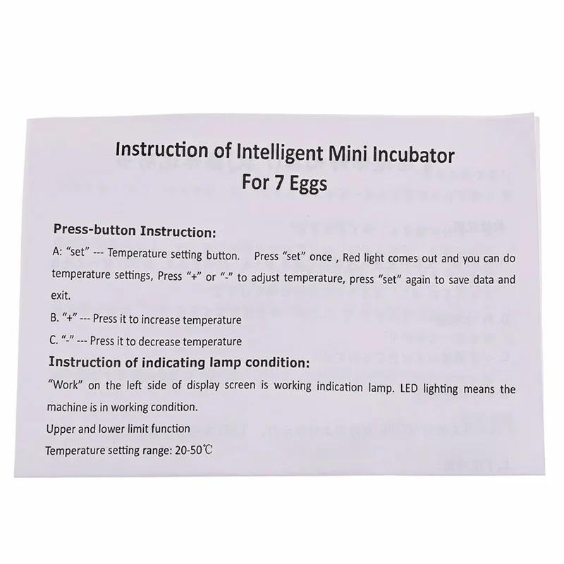Package Contents:1 *Mini Egg Incubator, 1 *Adapter