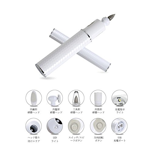 【세트내용】전동 네일 본체*1,원추형 헤드*1,원반형 헤드*2,삼각연 삭헤드*2,원통형 연삭헤드*2,충전 케이블*1,일본어 취급 설명서