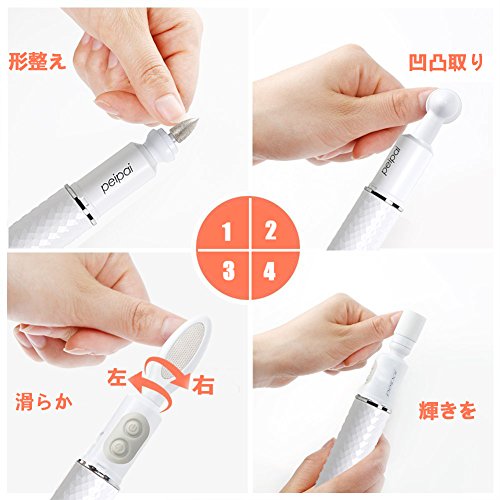 원본상품명: peipai 電動ネイルケア 爪やすりネイルポリッシャ 4種類アタッチメント IPX6防水レベル 二段階スピド 左右回 LEDライト USB充電 手足 爪磨き甘皮理 爪切り ネイルケア フット