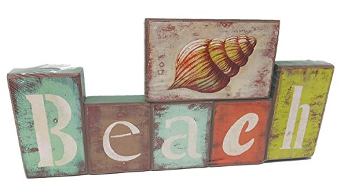 - Beach block 6 piece set spells "Beach" with seashell block