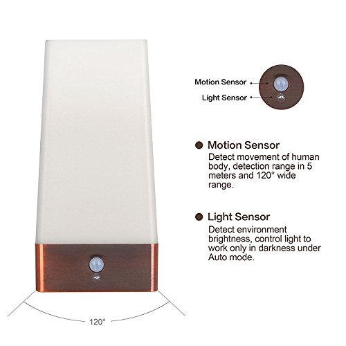 - AUTOMATIC ON/OFF- Build-in intelligent, eco-friendly Motion Sensor and Dusk to Dawn Sensor, Automatically turns the light on when detected movement within 6~10 ft at night and shuts off after 25s delay if no motion detected, this night light only activates in darkness and turn off when your room gets bright from sunlight, or overhead lighting, easily switch Auto and OFF mode on the bottome of base