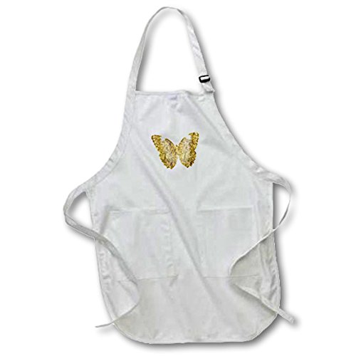 3dRose Print of Gold Bling Butterfly - Full Length Apron, 22 by 30-Inch, White, with Pockets (apr_213067_1)