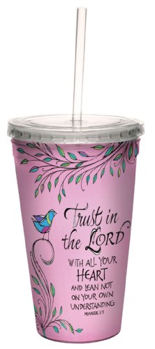Tree-Free Greetings cc33946 Trust in The Lord by Joanne Fink Artful Traveler Double-Walled Cool Cup with Reusable Straw, 16-Ounce