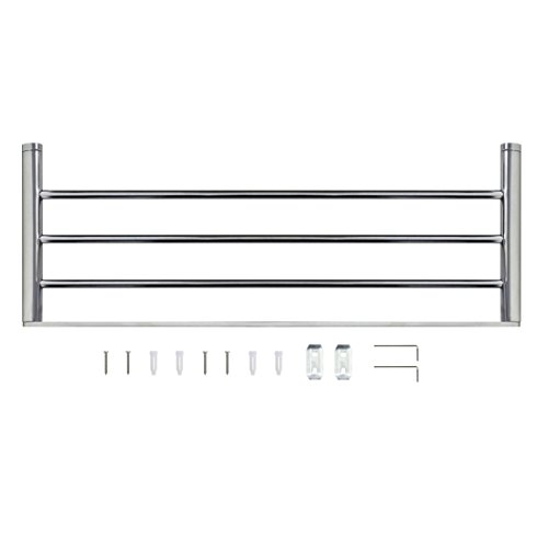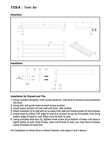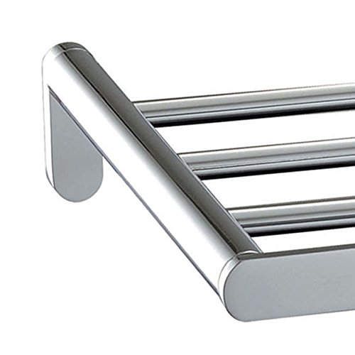 - Commercial & Hotel Grade 24” Towel Rack. Large Size = 25” End to End (24”Center Base to Center Base), 3” Height, 9½” Width. Concealed Screws.