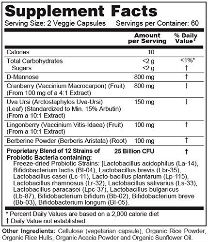 FAST-ACTING, POWERFUL, AND EFFECTIVE UTI RELIEF: UTI Probiotics Plus is a unique herbal supplement that offers powerful, fast-acting relief from urinary tract infections. These capsules are loaded with a potent, powerful blend of herbs with a long, proven history in fighting urinary tract infections: D-Mannose, Cranberry, Uva Ursi, Lingonberry, and Berberine.