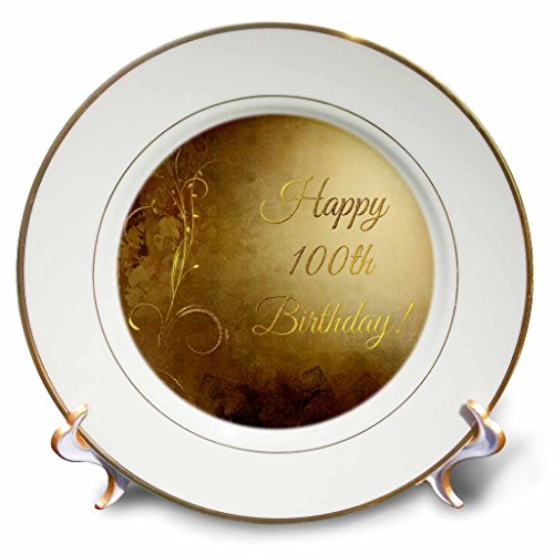 3D Rose 100Th Birthday-Elegant Vine on Gold Background Porcelain Plate, 8"