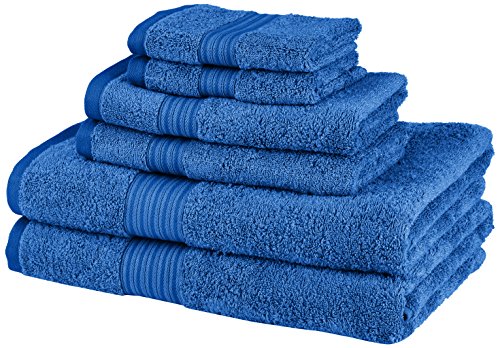 Whether stepping out of a hot shower or a relaxing soak in the tub, Pinzon offers a desirable way to dry off with this six-piece two-tone towel set. The plush towels offer a lighter weight and fluffy softness, yet quickly and effectively absorb water, so you don't get that cold, clammy feel like with less-absorbent bath towels. Even more, the towel set stands up over time, offering not only an appealing weight and feel, but also long-lasting durability.