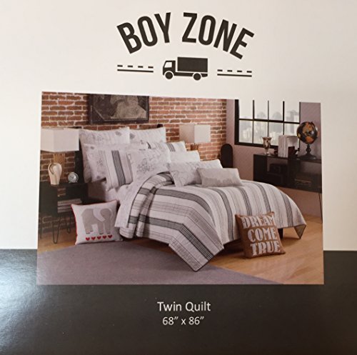 (Boy Zone)/Bedding Bath/Bedding/DIRECT FROM USA/Boy Zone 1 Piece Reversible Twin Quilt Travel Explorer Map (Gray)