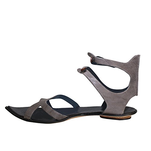Product DescriptionA gladiator sandal featuring a dual ankle strap with loop-and-button closures, a pointed toe, and rubber heel.0