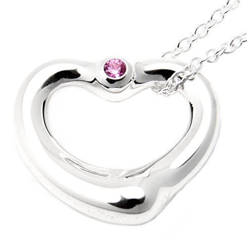 TIFFANY pink sapphire Sterling Silver Elsa Peretti Open Heart pendant necklace Small 24669661