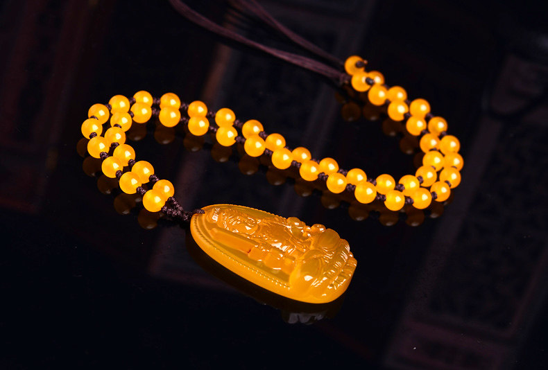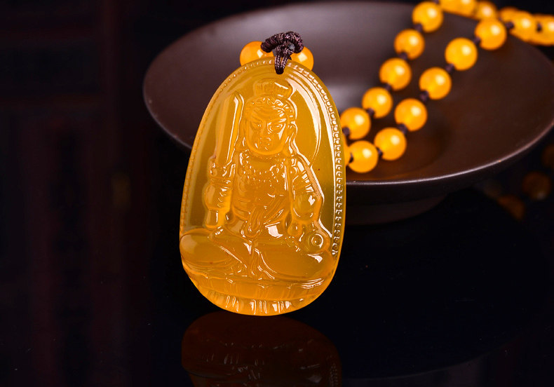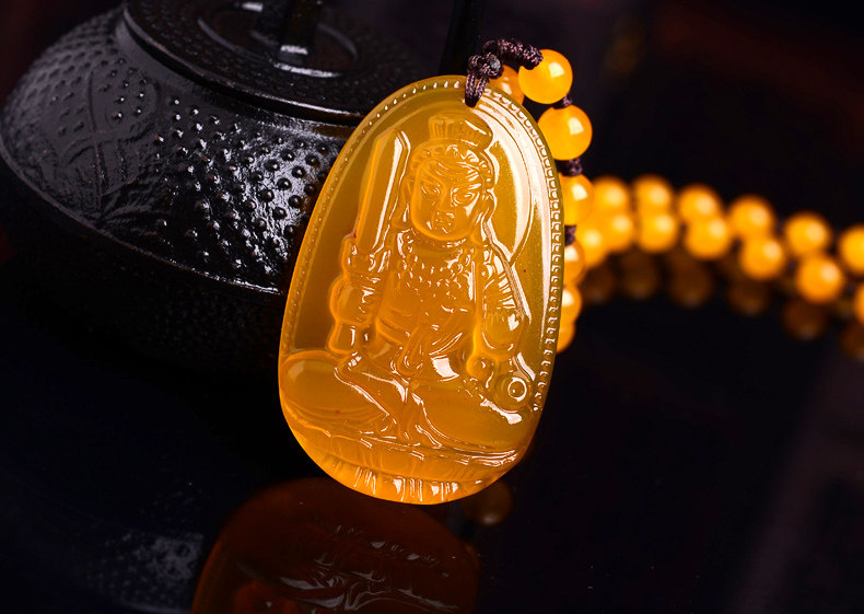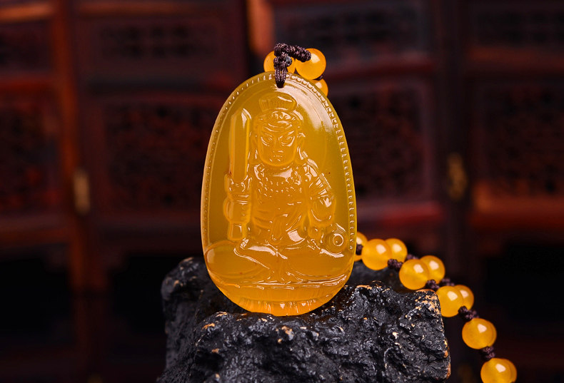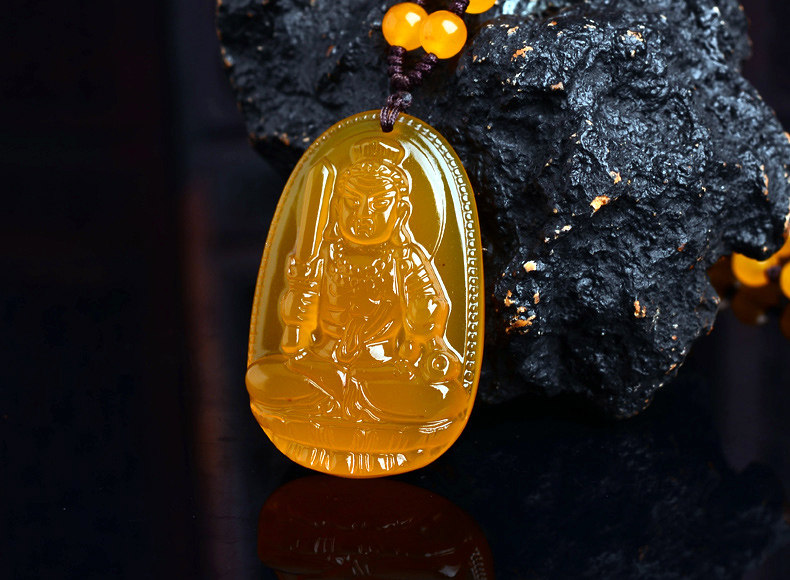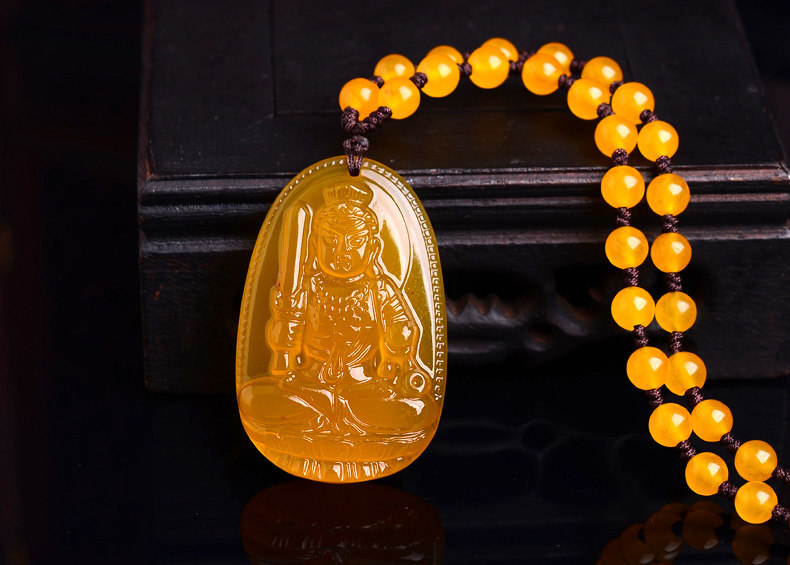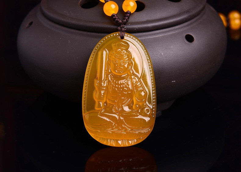 开光不动明王黄玉髓生肖属鸡本命佛吊坠 不动尊菩萨守护神项链
