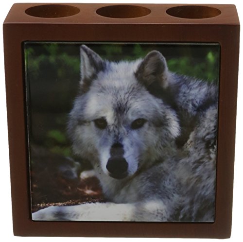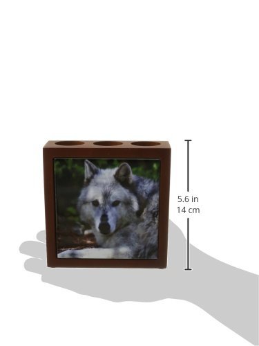 3dRose LLC ph_127803_1 Tile Pen Holder, 5-Inch, "Male Gray Wolf Watching You a Photo of a Wolf That Looks Like it is Staring at You"