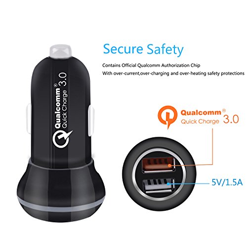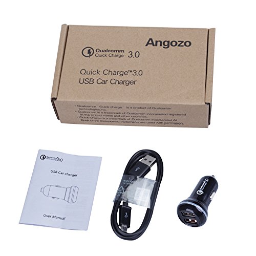 -. Feature : Quick Charge 3.0 Technology: the latest, fastest and most efficient usb charging technology so far, 4 times quicker than standard chargers, charging compatible devices up to 80% in about 35 minutes. / Quality & safety guarantee, Qualcomm certified car charger with built-in intelligent safety system protect your devices from over-current, over-heating and over-charging / Compatible with all USB powered devices including Android & Apple smartphones & tablets / 2-Port USB Car Charger. Simple, small and elegant design. Environmental ABS material, super-compact form factor. / What you get: 24-month hassle-free warranty and friendly customer service, Angozo Premium QC 3.0 USB Car Charger, USB Cable, User guide