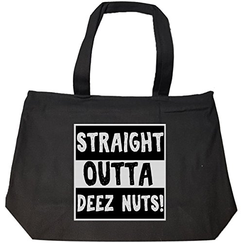 (TeeSwitch)/Accessories/Handbags/DIRECT FROM USA/Straight Outta Deez Nuts Typography Black And White Funny - Tote Bag With Zip