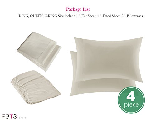 ★GIFT WRAPPING - FBTS Basic queen size color silver lining solid pattern luxury 4 piece bed sheet set include - 1 x flat sheet 90x102 inches, 1 x fitted sheet 60x80x18 inches, 2 x pillowcases 20x30 inches. Great gift idea - beautifully packaged with a ribbon bow tied in the middle. Suitable for adults, kids, toddlers, teenage boys and teenage girls. Include twin, california king, queen and king sizes. Silky soft cozy and luxurious bed sheets YOU CAN SEE AND FEEL.