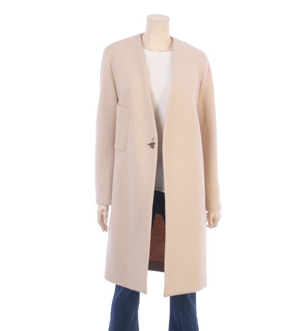 LINE, 군더더기없이 심플한 디자인으로 차분하여 포멀한 분위기를 연출하는 노카라 모직 코트입니다