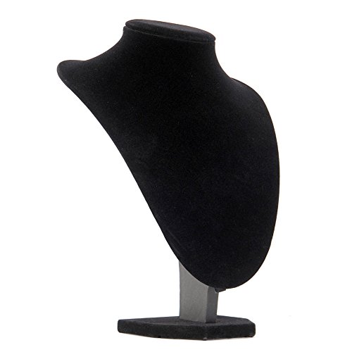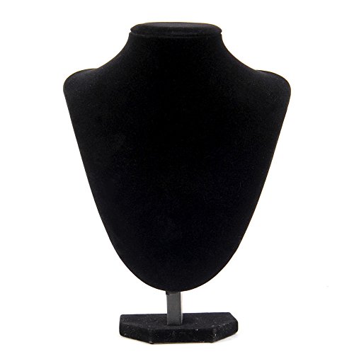 - Feature : 3-dimensional velvet jewelry stand / Crafted of wood covered / The bust style stand looks classic and elegant displaying your most prized pieces / Available in black color / Measures 11.4-inch height by 8.3-inch width (APPROXIMATELY)