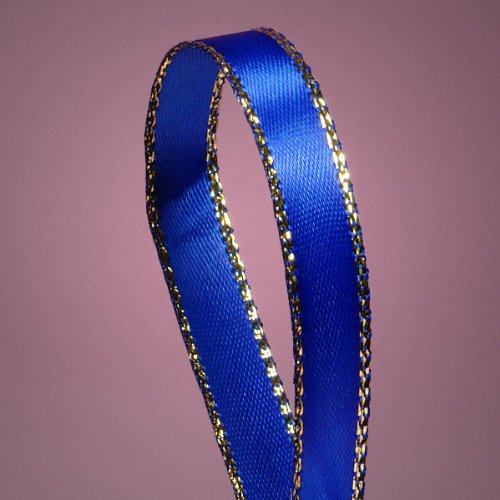 Royal Blue Satin Ribbon with Gold Edges, 3/8" X 50Yd