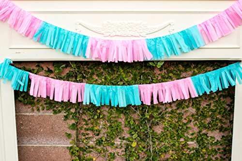- Gender Reveal Tissue Paper Hawaiian Style Banner Over 9 Feet Long