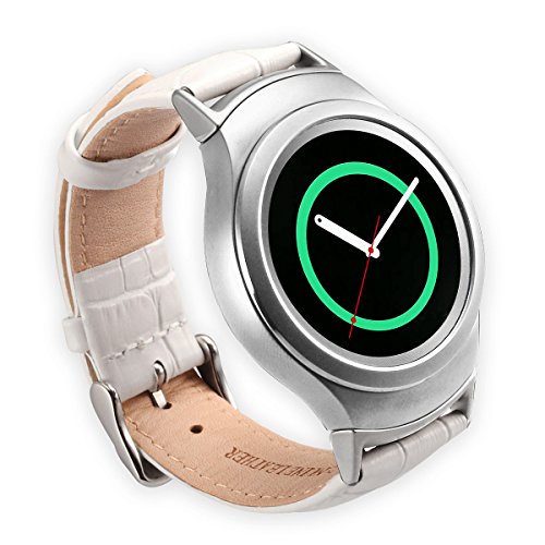 Gear S2 Band - Valkit Genuine Leather Smart Watch Bands, Soft Replacement Bracelet Wristband Strap, Crocodile Pattern leather Bands for Samsung Gear S2 (SM-R720/R730) - (White) with Silver Adapter