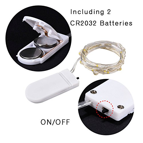 -. Feature : Fairy string lights: 8 pieces 20 micro LED lights 6.6 feet/ 2 meters ultra thin string wire, suitable for decorating festivals and parties to create a warm atmosphere / 8 Various color lights: warm white, cool white, green, blue, pink, purple, red and yellow lights, provide you a choices you favorite to match the accasions / Replaceable battery: each string light is powered by 2 CR2032 batteries (included); Switch on the lights and enjoy the amazing warm atmosphere / Flexible and easy to install: string lights are made from a fine bendable sliver wire, can be bent to most shapes as beautiful decorations as you like / Decorative supplies: micro string lights are suitable for party, wedding, bar, street, indoor, outdoor, Christmas, holidays, etc.